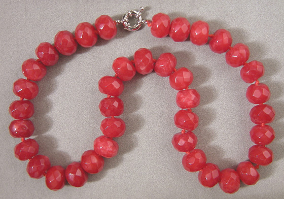 ![]() Supersize Huge faceted ruby rondelles strung as necklace with cord knotted between beads. |