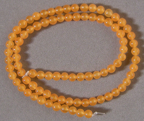 Orange topaz round beads Catalog 2026 15 in. 4mm diameter 51 carats $14(SOLD) |
