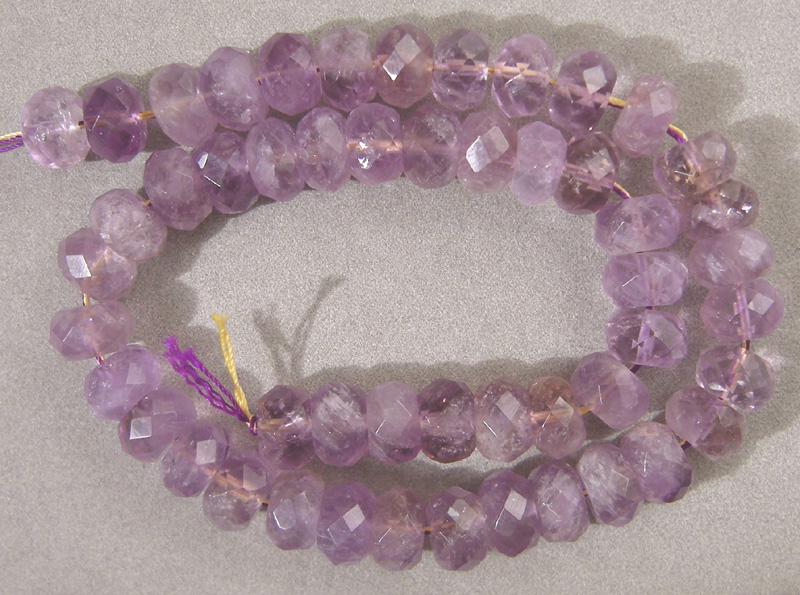 Amethyst/ametrine rondelle beads Catalog 2037 18 in. 12 x 9mm 525 carats $25(SOLD) |