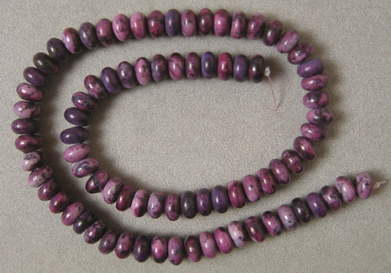 Sugilite rondelle beads Catalog 2052 16 in. 5 x 8mm 205 carats $50(SOLD) |