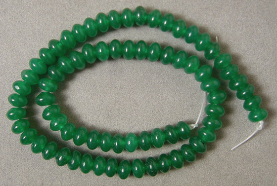Emerald rondelle beads Catalog 2054 15 in. 5 x 8mm 190 carats $43(SOLD) |