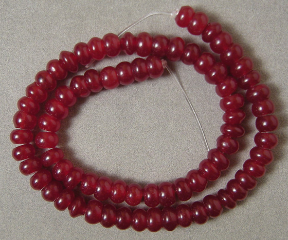 Ruby rondelle beads Catalog 2055 16 in. 5 x 8mm 217 carats $28(SOLD) |