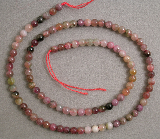 Tourmaline round beads Catalog 1466 15.5 in. 4mm 54 carats $25(SOLD) |