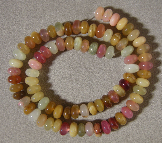 Kunzite rondelle beads Catalog 2072 15.5 in. 8 x 5mm 206 carats $30(SOLD) |
