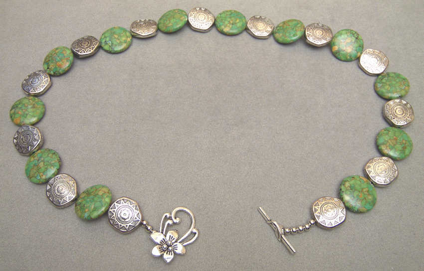 ![]() Supersize Vintage necklace with green blue old turquoise and silver beads and clasp. |