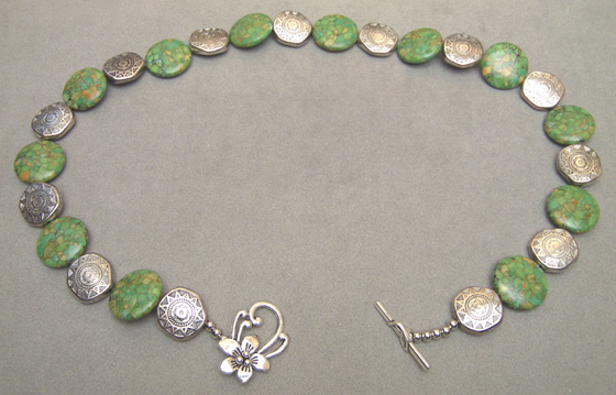 Old turquoise, silver necklace Catalog 2083 20 in. 20 x 6mm turquoise beads 18 x 5mm silver beads 280 carats $25(SOLD) |
