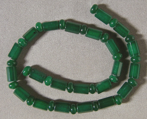 Jade beads Catalog 2093 15 in. 12 x 7mm barrels 4 x 8mm rondelles 206 carats $28(SOLD) |
