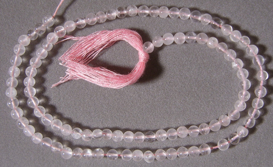 Rose quartz round beads Catalog 2103 14.5 in. 4mm rounds 39 carats $11(SOLD) |