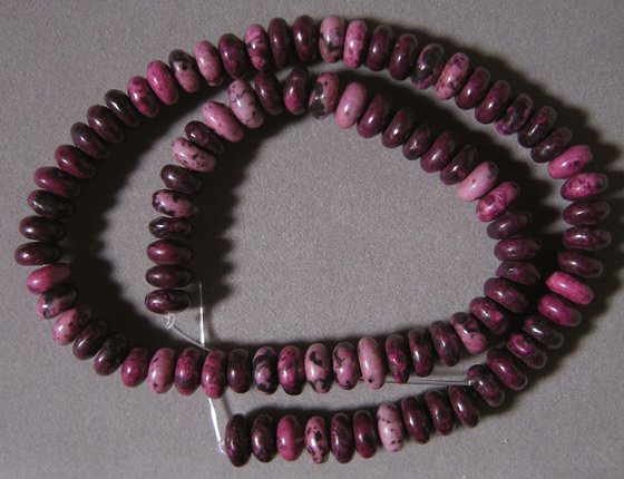 Rhodonite rondelle beads Catalog 2107 16 in. 8 x 5mm 225 carats $21(SOLD) |