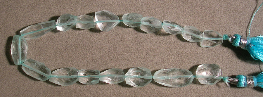 Supersize Aquamarine faceted nugget bead strand Catalog 1471 8 in. 12 to 15mm long 53 ct. $30(SOLD) |