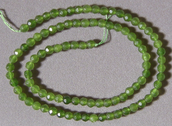 Green jade round beads Catalog 2112 15 in. 4mm 43.5 carats $19(SOLD) |