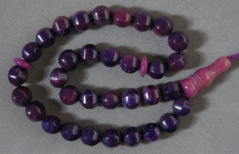 Purple jade lantern beads Catalog 2115 14 in. 10 x 9mm 230 carats $19(SOLD) |