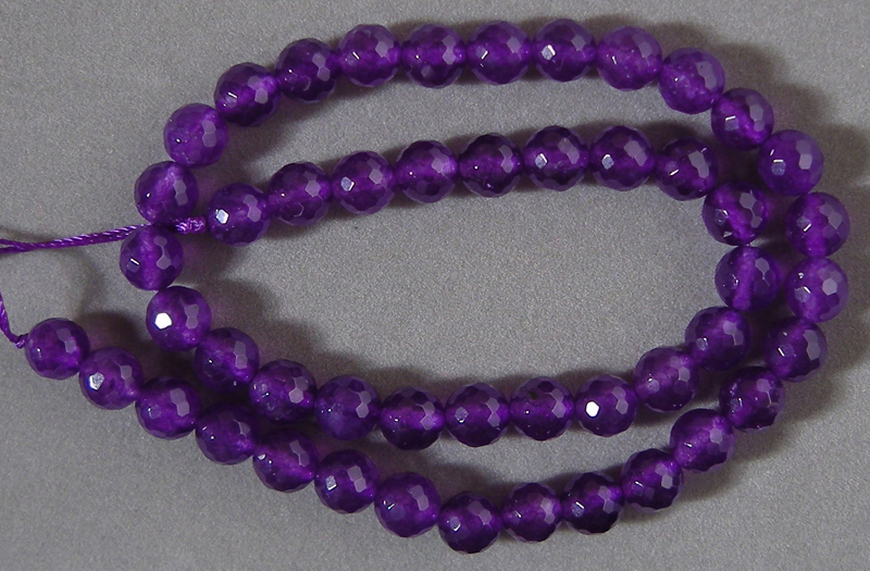 Amethyst faceted round beads Catalog 2117 15 in. 8mm 155 carats $28(SOLD) |