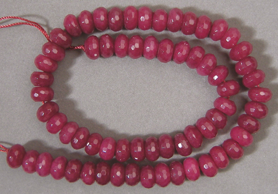 Ruby faceted rondelle beads Catalog 2128 15.5 in. 10 x 6mm 307 carats $38(SOLD) |
