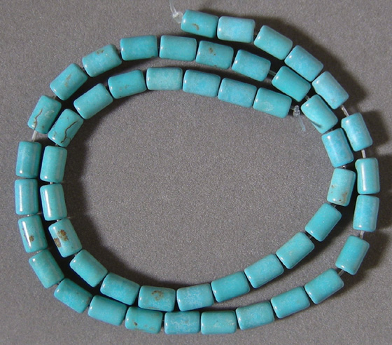 Turquoise cylinder beads Catalog 2132 16 in. 8 x 6mm 87 carats $11(SOLD) |