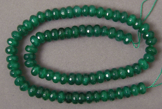 Emerald rondelle beads Catalog 2140 15 in. 5 x 8mm 188 carats $30(SOLD) |