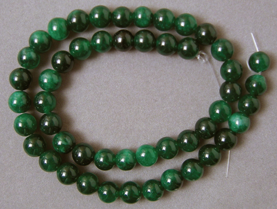 Emerald round beads Catalog 2151 15 in. 8mm 172 carats $40(SOLD) |