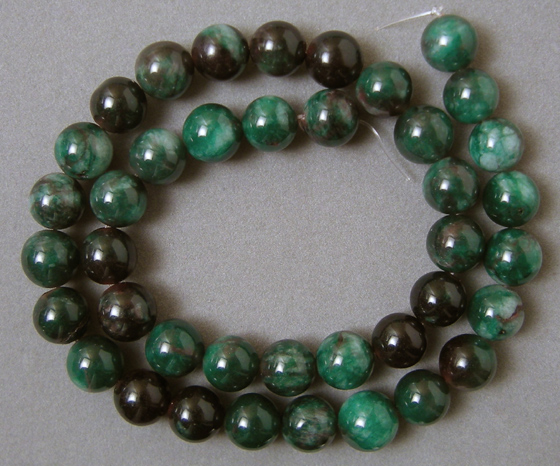 Emerald round beads Catalog 2152 15 in. 10mm 254 carats $50(SOLD) |