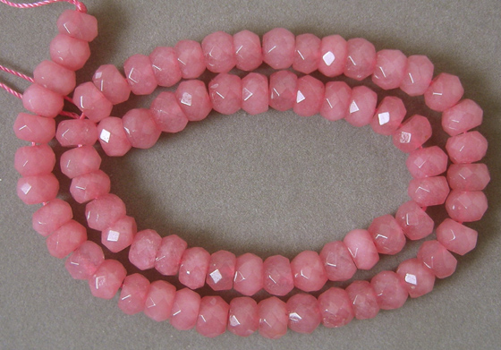 Morganite faceted rondelle beads Catalog 2160 15 in. 5 x 8mm 186 carats $24(SOLD) |