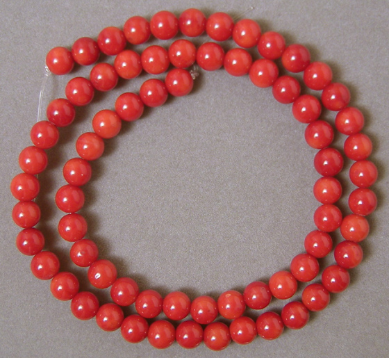 Coral round beads Catalog 2162 16 in. 6 to 7mm 110 carats $18(SOLD) |