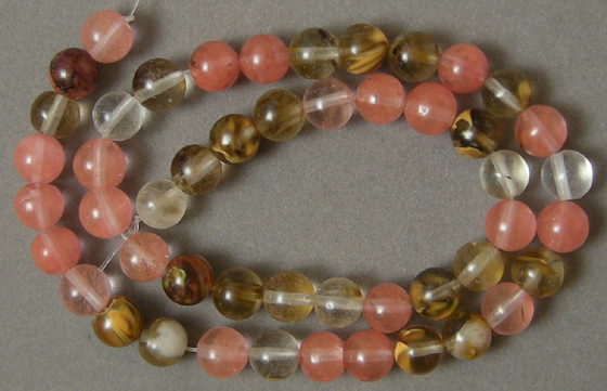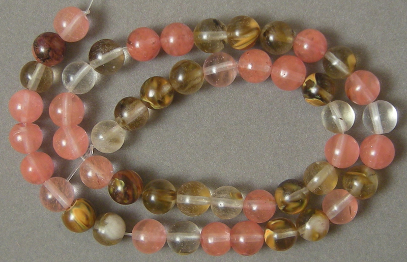 Tourmaline round beads Catalog 2164 15 in. 8mm 168 carats $36(SOLD) |