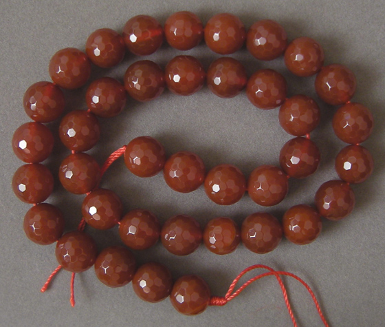Red agate faceted round beads Catalog 2175 15 in. 10mm 271 carats $32(SOLD) |