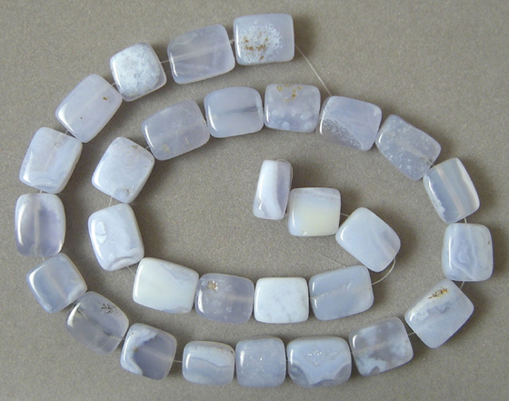 Blue lace agate rectangle beads Catalog 2178 16 in. 10 to 15mm long by 4 to 6mm thick 299 carats $32 |