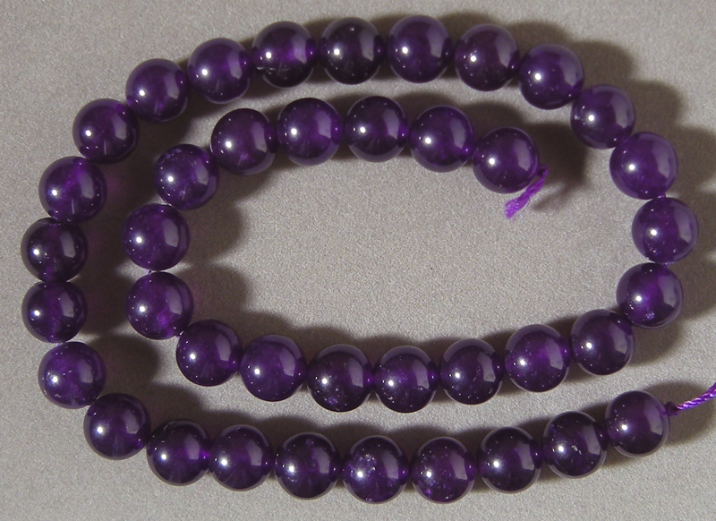Amethyst round beads Catalog 2182 15.5 in. 10mm 220 carats $22(SOLD) |