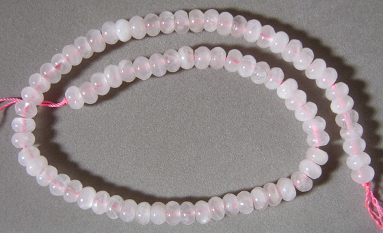 Rose quartz rondelle beads Catalog 2186 15 in. 8 x 5mm 210 carats $22(SOLD) |