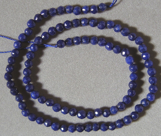 Blue jade faceted round beads Catalog 2192 15.5 in. 4mm 52 carats $21(SOLD) |