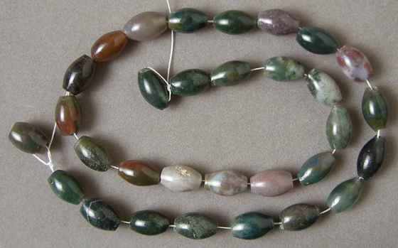 Indian agate barrel beads Catalog 2195 15.5 in. 12 x 8mm 175 carats $18 |