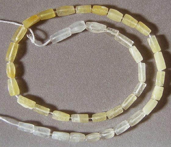 Yellow aventurine cube beads Catalog 2196 13.75 in. 6 to 10mm long 64 carats $15 |
