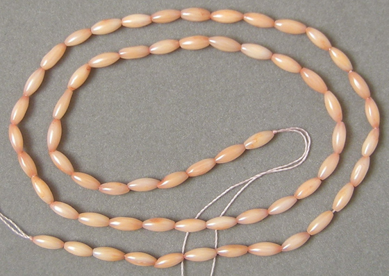 Pink coral barrel beads Catalog 2202 16 in. 7 x 3mm 23 carats $15(SOLD) |
