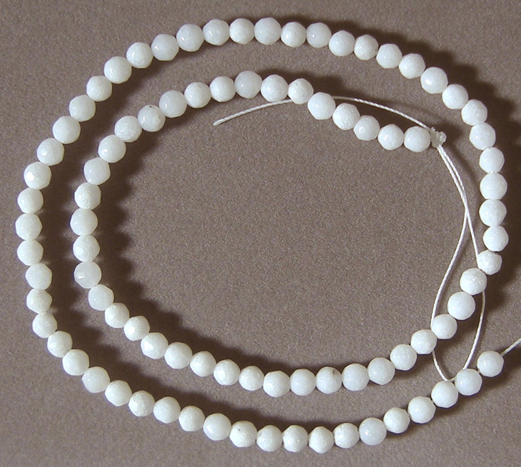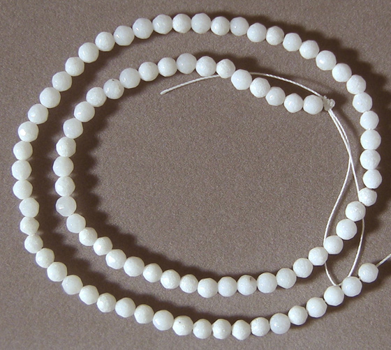 White jade faceted round beads Catalog 2205 14.5 in. 4mm 44 carats $12(SOLD) |