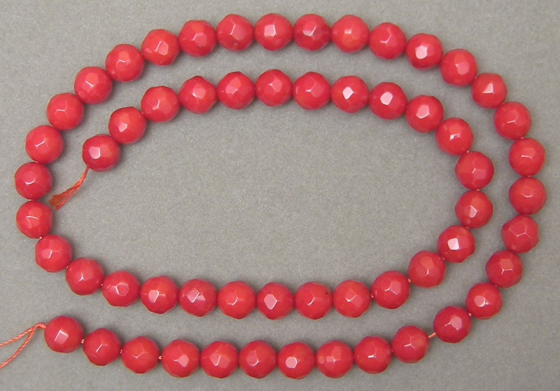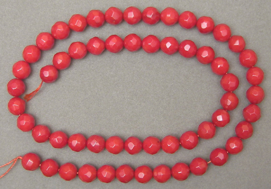 Coral faceted round beads Catalog 2209 15 in. 7mm 123 carats $23(SOLD) |