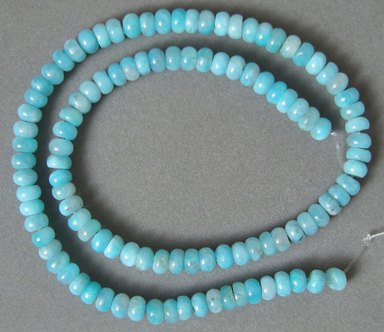 Amazonite rondelle beads Catalog 2226 16 in. 6mm 123 carats $27(SOLD) |