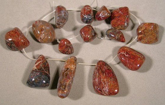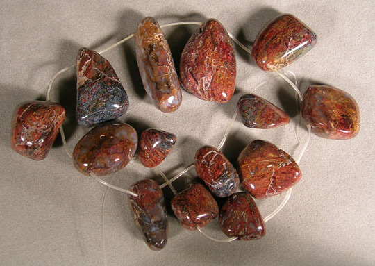Pietersite nugget beads Catalog 1483 14 beads 20 to 46mm long 762 ct. $9(SOLD) |