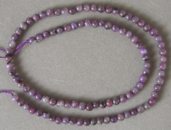 Sugilite round beads Catalog 2254 15.5 in. 4mm 49 carats $20(SOLD) |