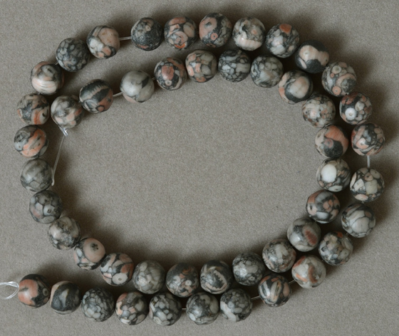 Crinoid jasper round beads Catalog 2279 14.5 in. 8mm 167 carats $21(SOLD) |
