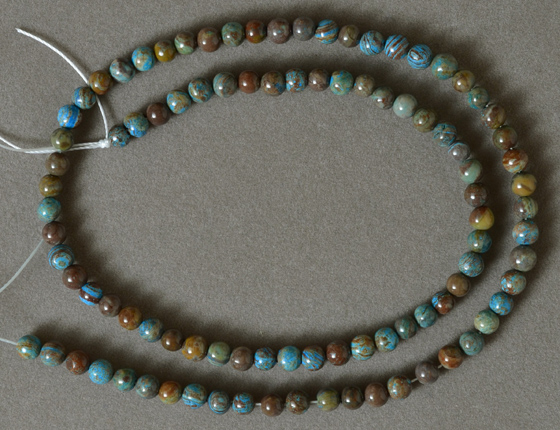 Rainbow calsilica round beads Catalog 2292 15.5 in. 4mm 51 carats $14(SOLD) |