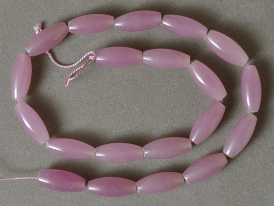 Lavender Jade barrel beads Catalog 2300 15 in. 19 x 8mm 168 carats $17(SOLD) |