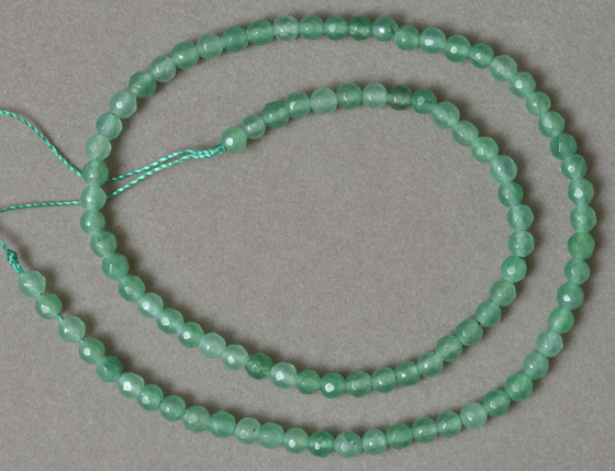 Emerald faceted round beads Catalog 2325 15 in. 4mm 43.5 carats $23(SOLD) |
