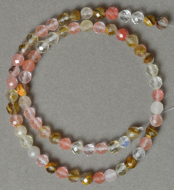 Watermelon tourmaline faceted round beads Catalog 2334 15 in. 6mm 74 carats $21(SOLD) |