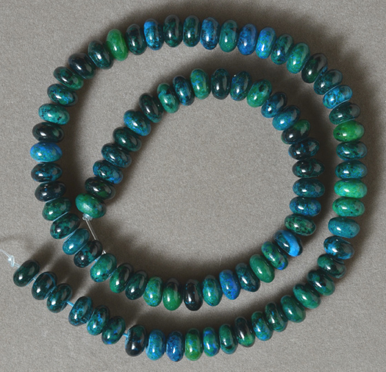 ![]() Supersize Phoenix stone rondelle beads--mostly blue with green and dark shades. |