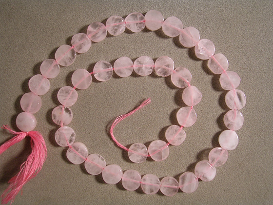 Supersize Rose quartz coin beads Catalog 1496 14 in. 8mm 87 ct. $5.50(SOLD) |