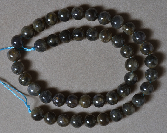 Larvikite round beads Catalog 2376 15 in. 9mm 224 carats $18 |