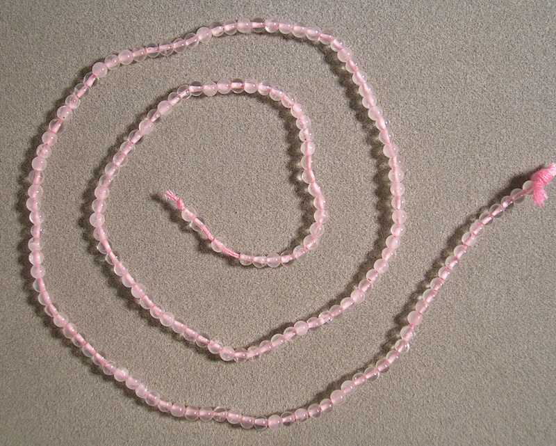 Supersize Rose quartz round beads Catalog 1498 14 in. 2 to 3mm 16.5 ct. $5(SOLD) |