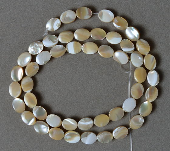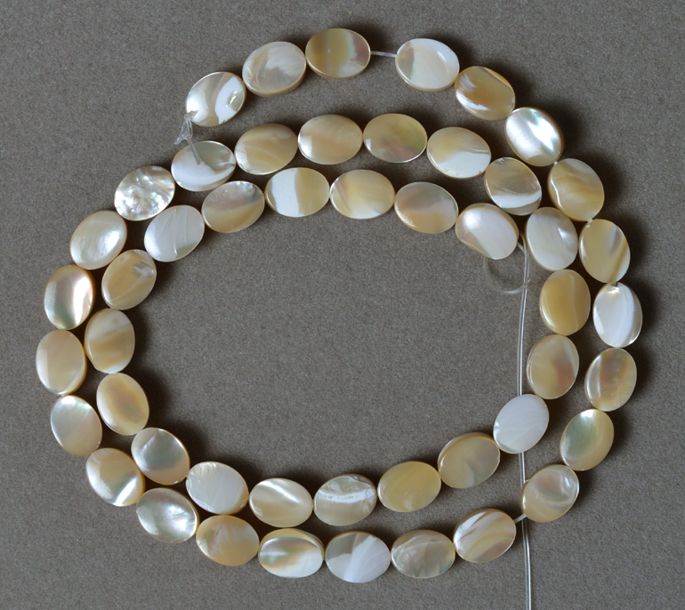 Mother of pearl oval beads Catalog 2384 15.5 in. 8 x 6 x 3mm 79 carats $20 |