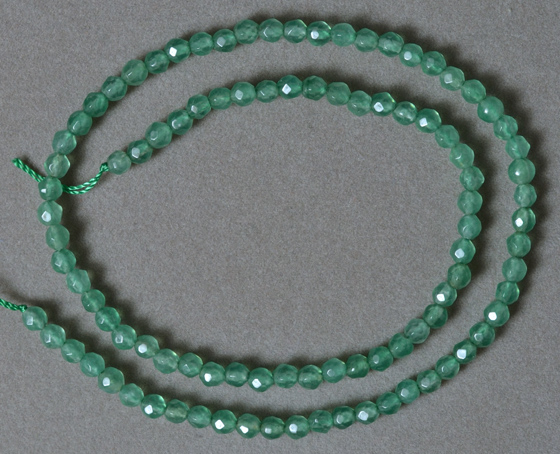 Emerald faceted round beads Catalog 2388 15 in. 4mm 37 carats $25(SOLD) |