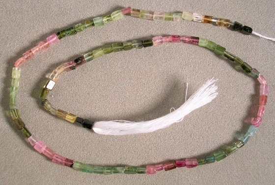 Supersize Tourmaline rectangle beads Catalog 1499 14 in. 2 x 3 x 4mm 28.5 ct. $25(SOLD) |